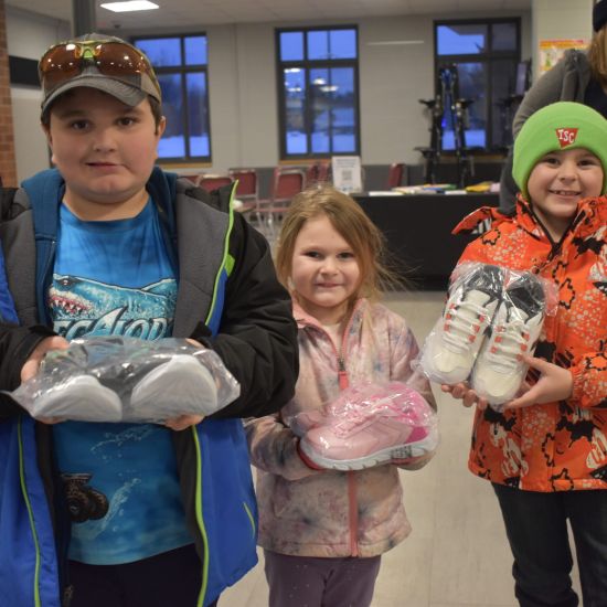 Shoes, hats, cookies, hot chocolate, coloring pages and goodie bags – oh my! Our shoe distribution at Edwards-Knox the evening of January 15th was nothing short of amazing, with over 100 students receiving a brand-new pair of shoes. This wonderful community event, which was also opened up to neighboring Hermon-Dekalb School District, was thanks to a continued partnership between UWNNY, Fuccillo Subaru and Operation Warm.